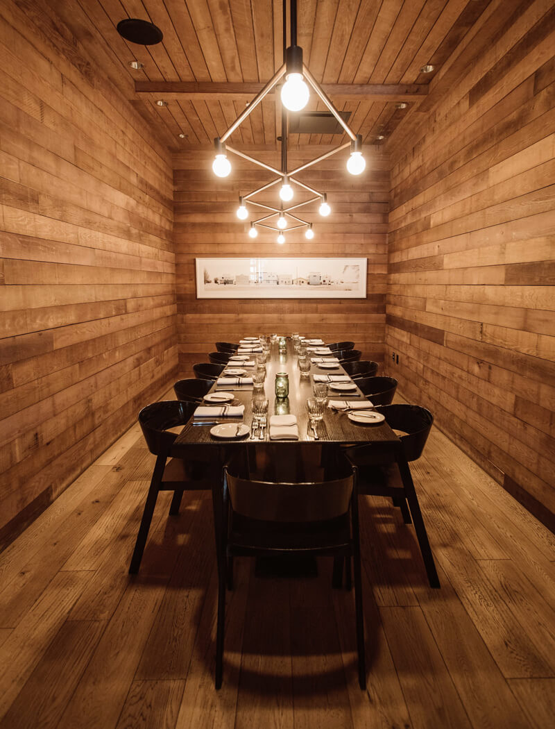 Private and semi-private spaces bring comfort to great company and great food. Host groups of 12-50 people in a rustic and modern space inspired by local influences. Choice menus and reception packages available.